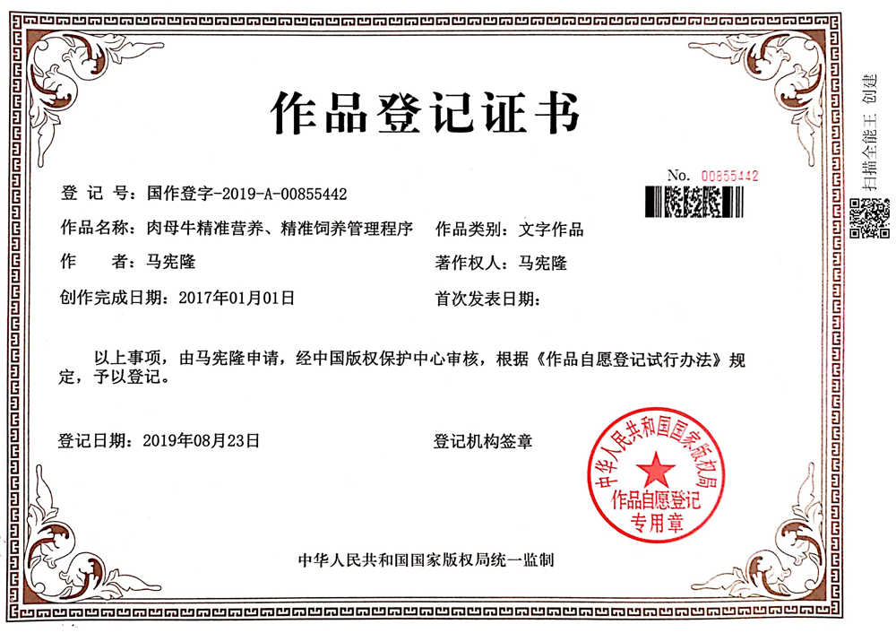 母牛精準模式證書